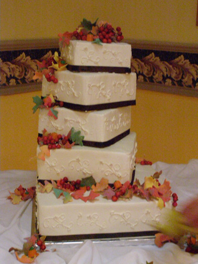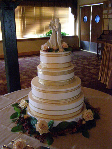 Wedding cakes are priced per slice. Please call Lisa to talk with her one on one. She will need to know some background information before she can provide you with a quote.